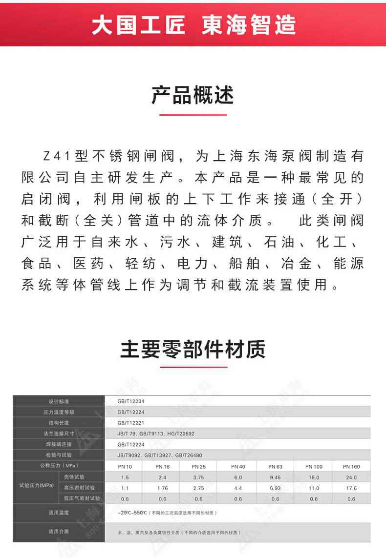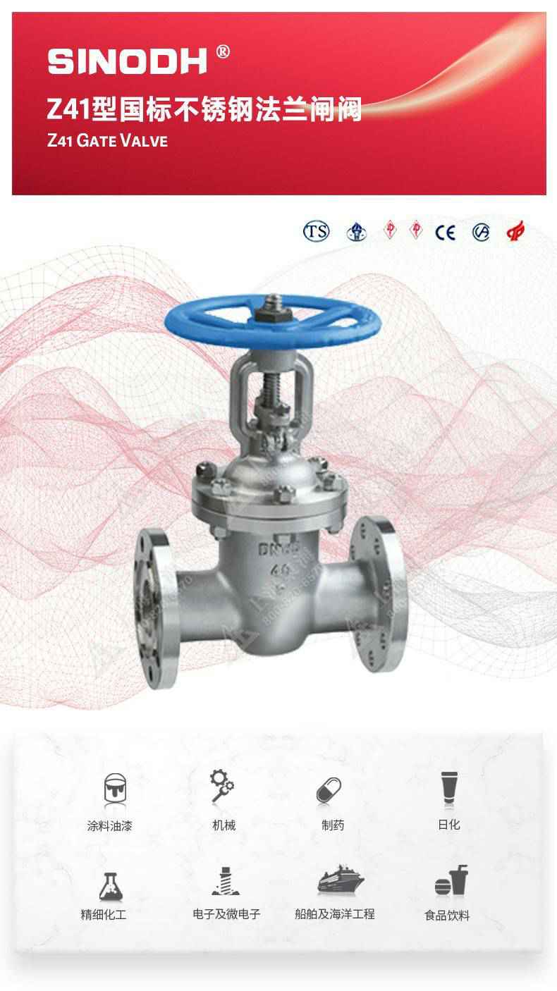 Z41型不锈钢闸阀,为开云体育(中国)开云KaiYun SPORTS自主研发生产。本产品是一种最常见的启闭阀,利用闸板的上下工作来接通(全开)和截断(全关)管道中的流体介质。此类闸阀广泛用于自来水、污水、建筑、石油、化工、食品、医药、轻纺、电力、船舶、冶金、能源系统等体管线上作为调节和截流装置使用。