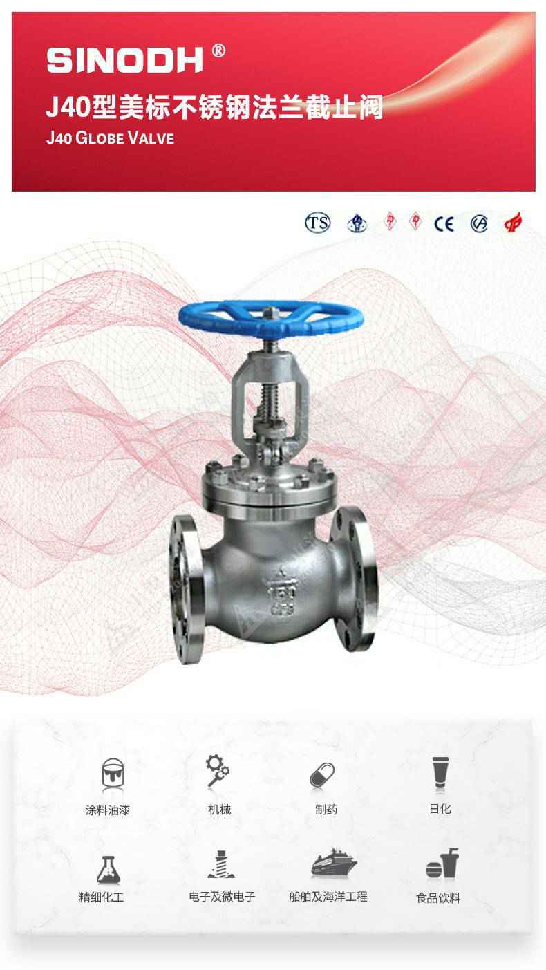 J40型美标不锈钢截止阀,为开云体育(中国)开云KaiYun SPORTS自主研发生产。本产品的设计制造符合美国国家标准ANSIB16.34,美国石油学会标准AP1 6D和AP I 600要求,产品结构紧凑密、刚性好、封性性能优秀是一种最常见的启闭阀,利用闸板的上下工作来接通(全开)和截断(全关)管道中的流体介质。